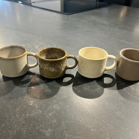 Our gorgeous espresso set is perfection. Well-set, as heavy as ceramic should be, the ivory beige brown tones are so beautiful and extremely on trend.